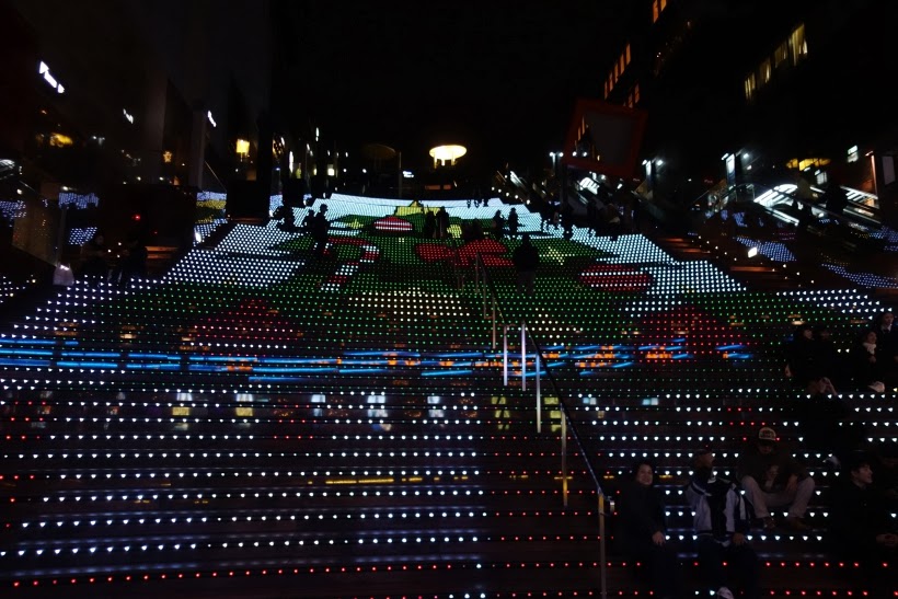 | 京都站右側的牆面燈飾,右側下方是京都劇場與飯店所在 |